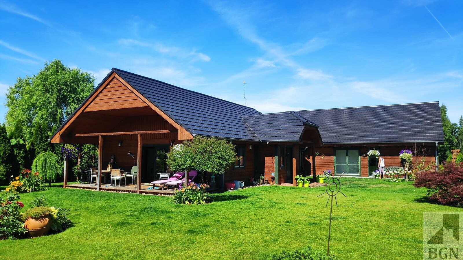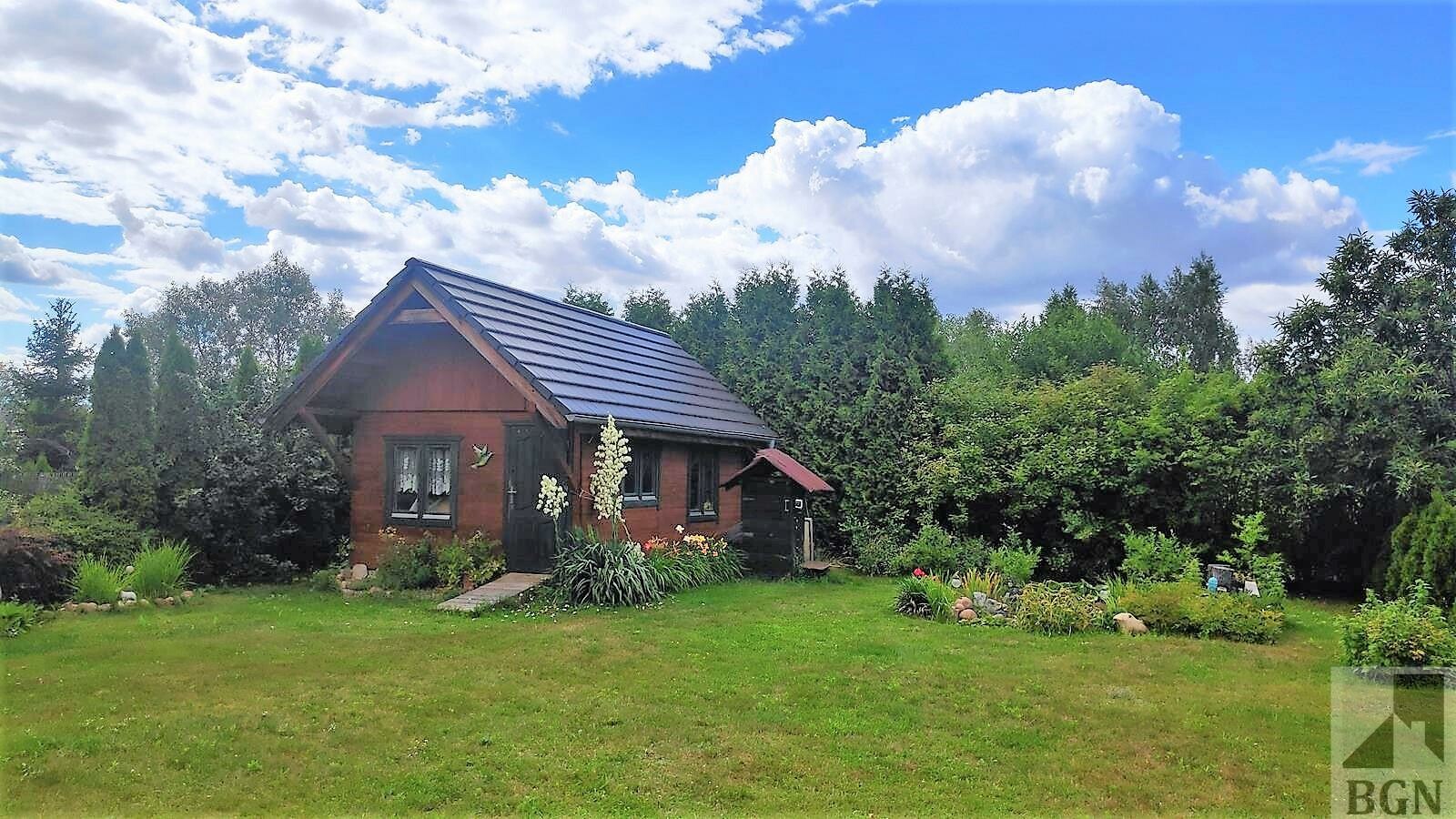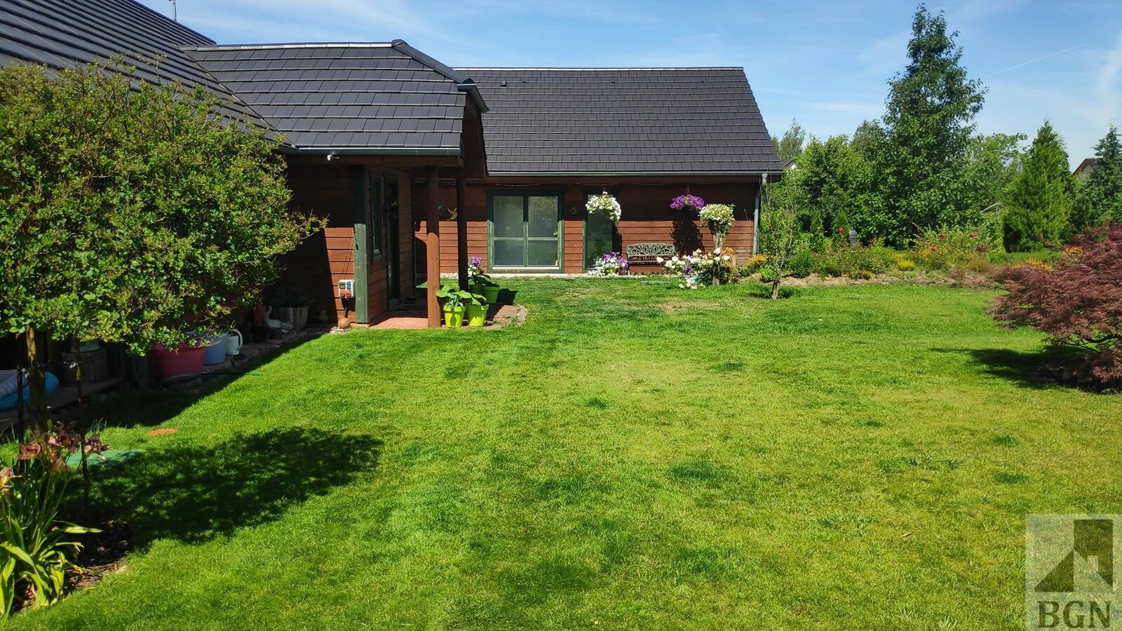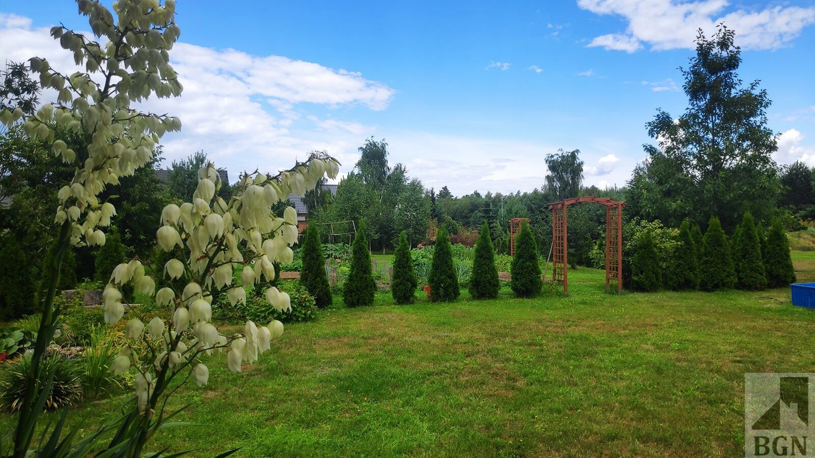 Piękne nasadzenia, drzewka, krzewy, rabaty kwiatowe, oczko wodne, ogródek warzywny.