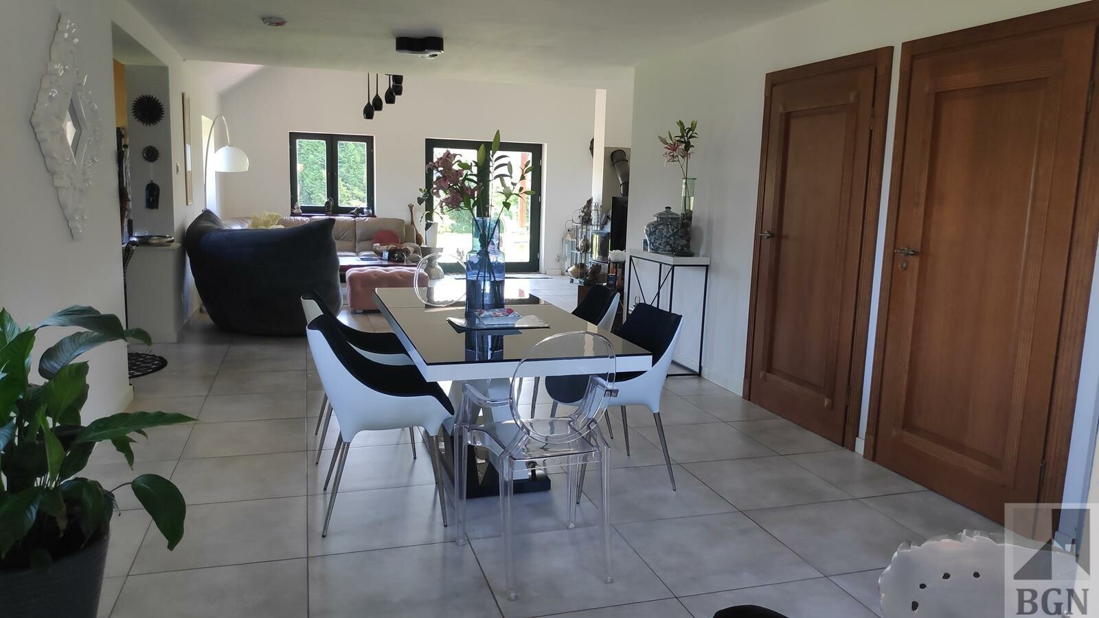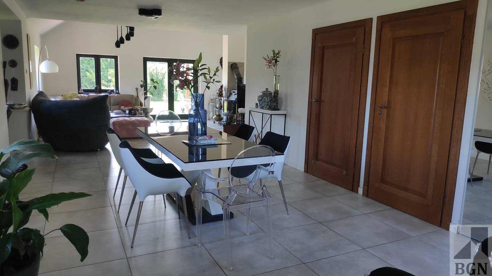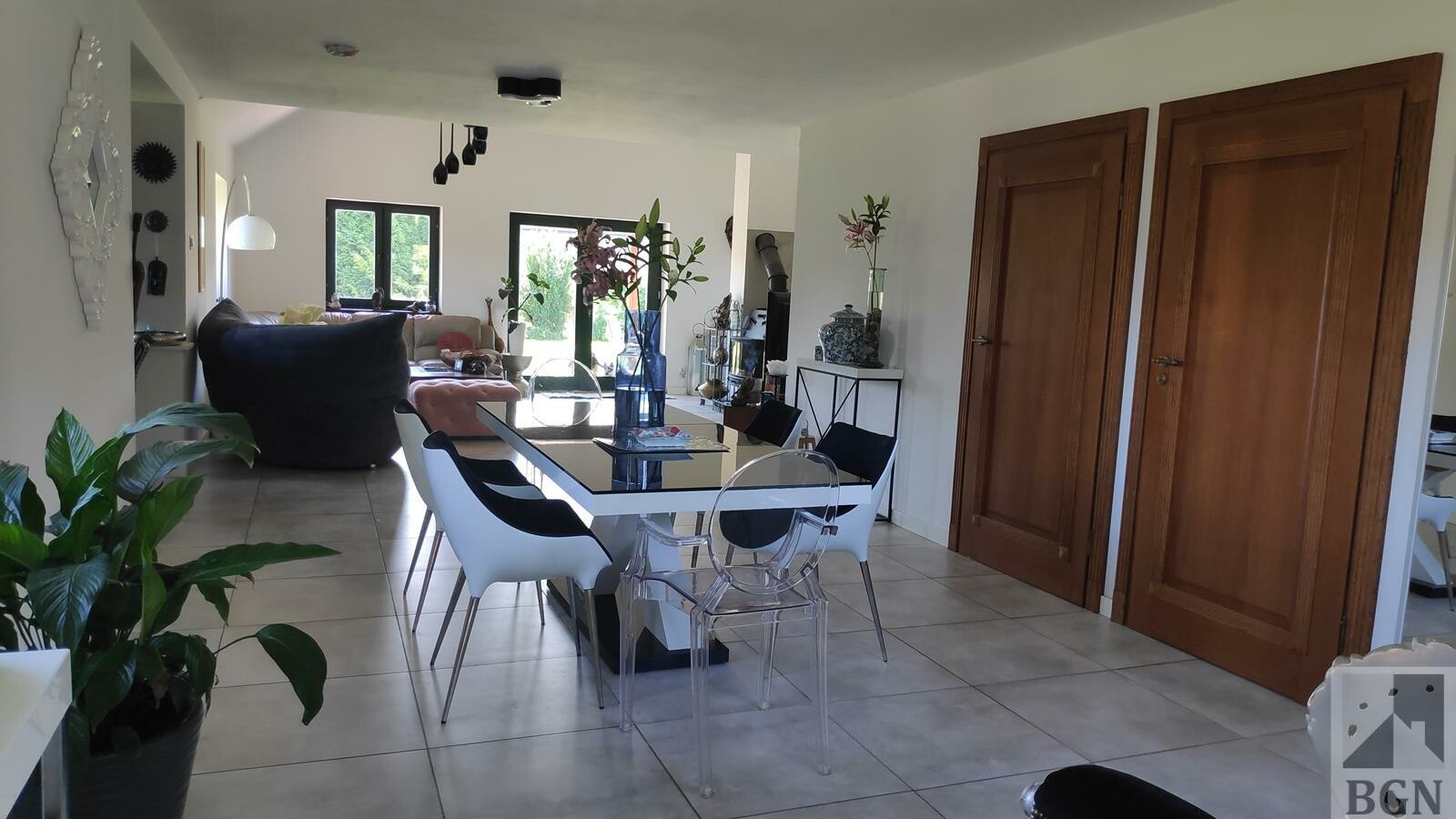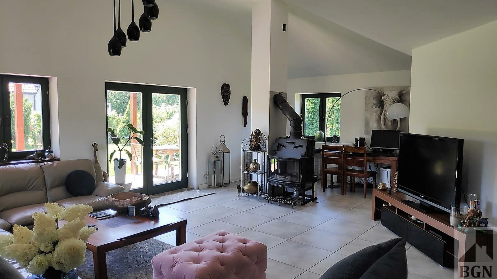 Ogrzewanie podłogowe - pompa ciepła głębinowa (8 odwiertów po 60 metrów) zapewnia komfort i stabilność cieplną. Okna w części dziennej drewniane 2 - szybowe, tarasowe 3 szybowe, w części kuchennej i prywatnej - 3 szybowe PCV.