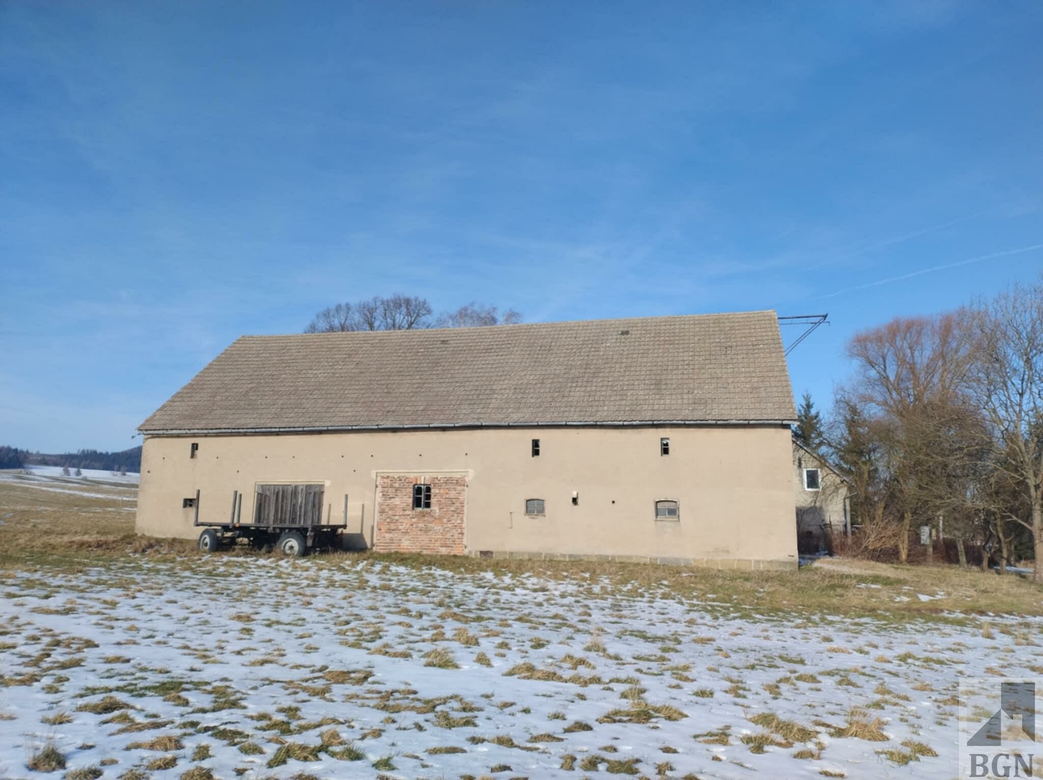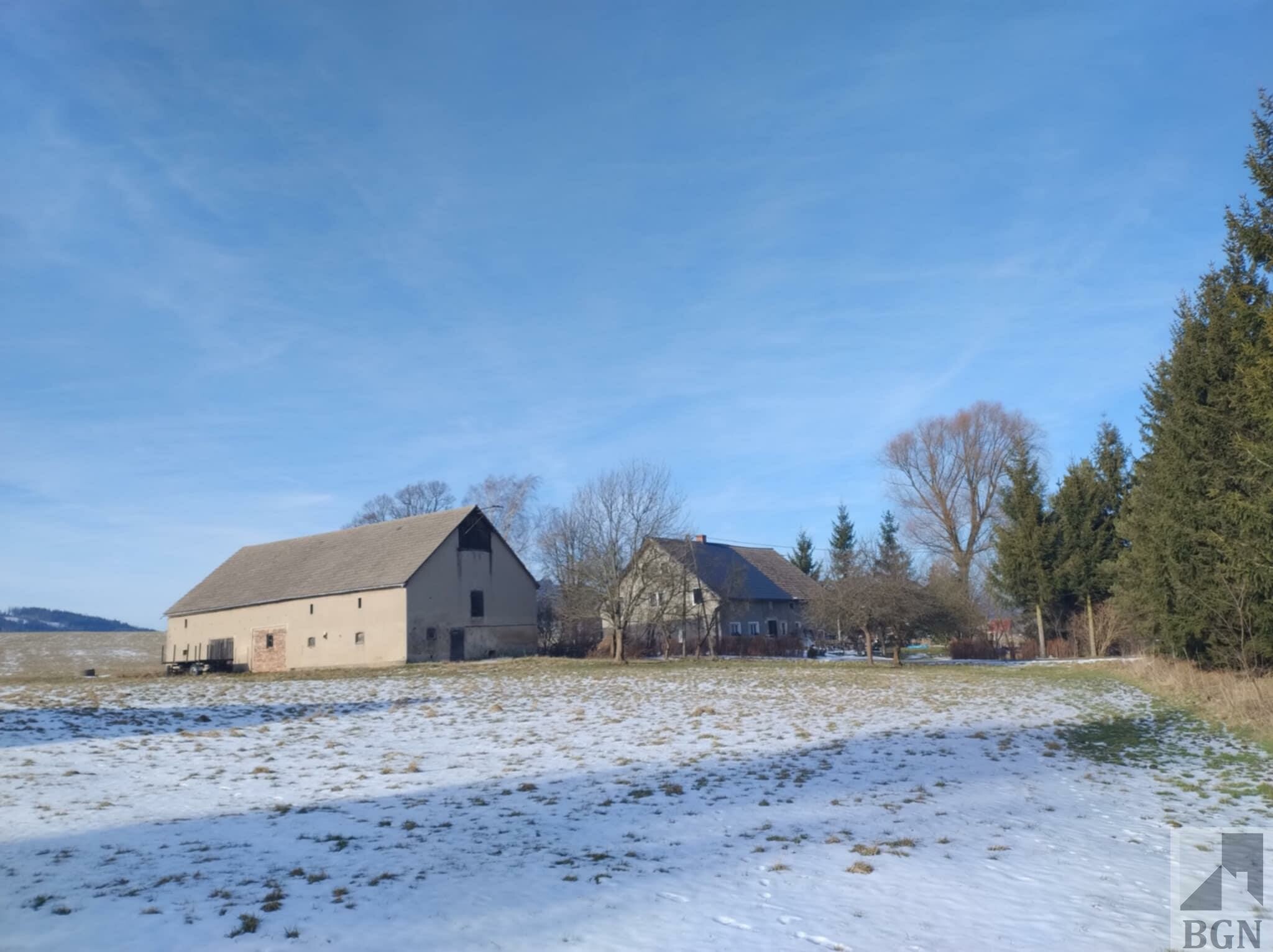 Działka zabudowana stodołą położona w miejscowości Olszyny, gmina Kamienna Góra.