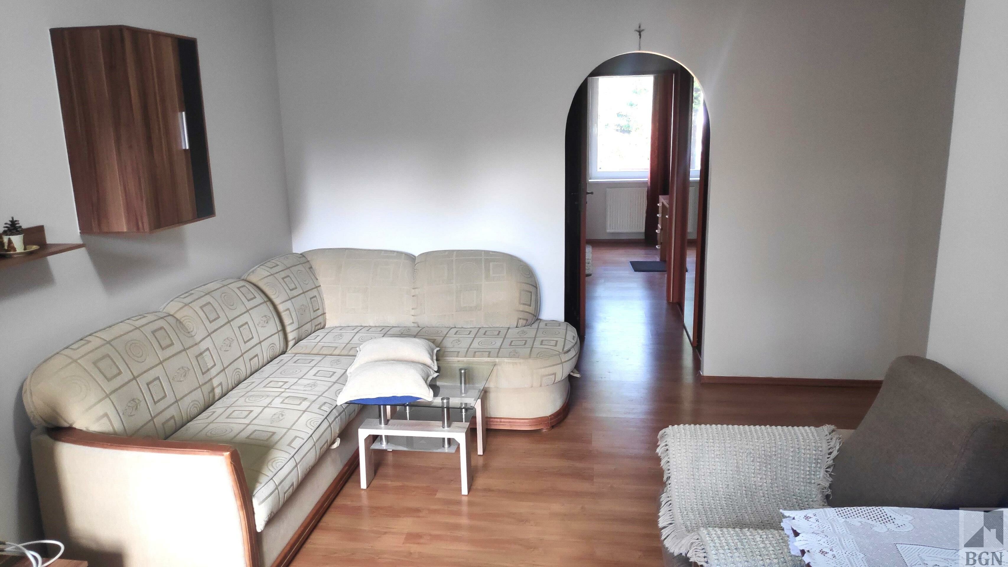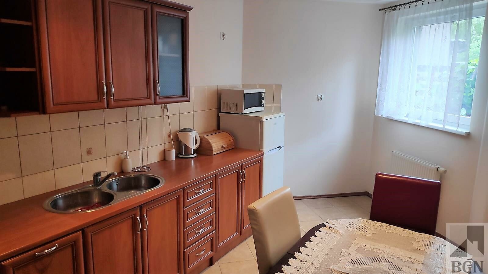 Na wyposażeniu: rozkładane łóżko 2 os. kanapa, pralka, lodówko-zamrażarka, kuchenka elektryczna, mikrofalówka, sztućce, talerze.
